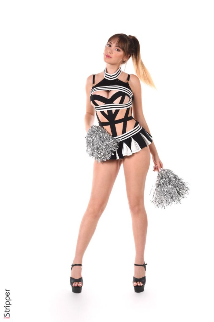 A sheer black teddy hugs every curve that Stefanija flaunts. 16 photos